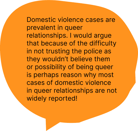 Different points mentioned from the anonymous interview we had with people about the topic of Intimate Partner Violence for queer relationship specifically on lesbian relationship.